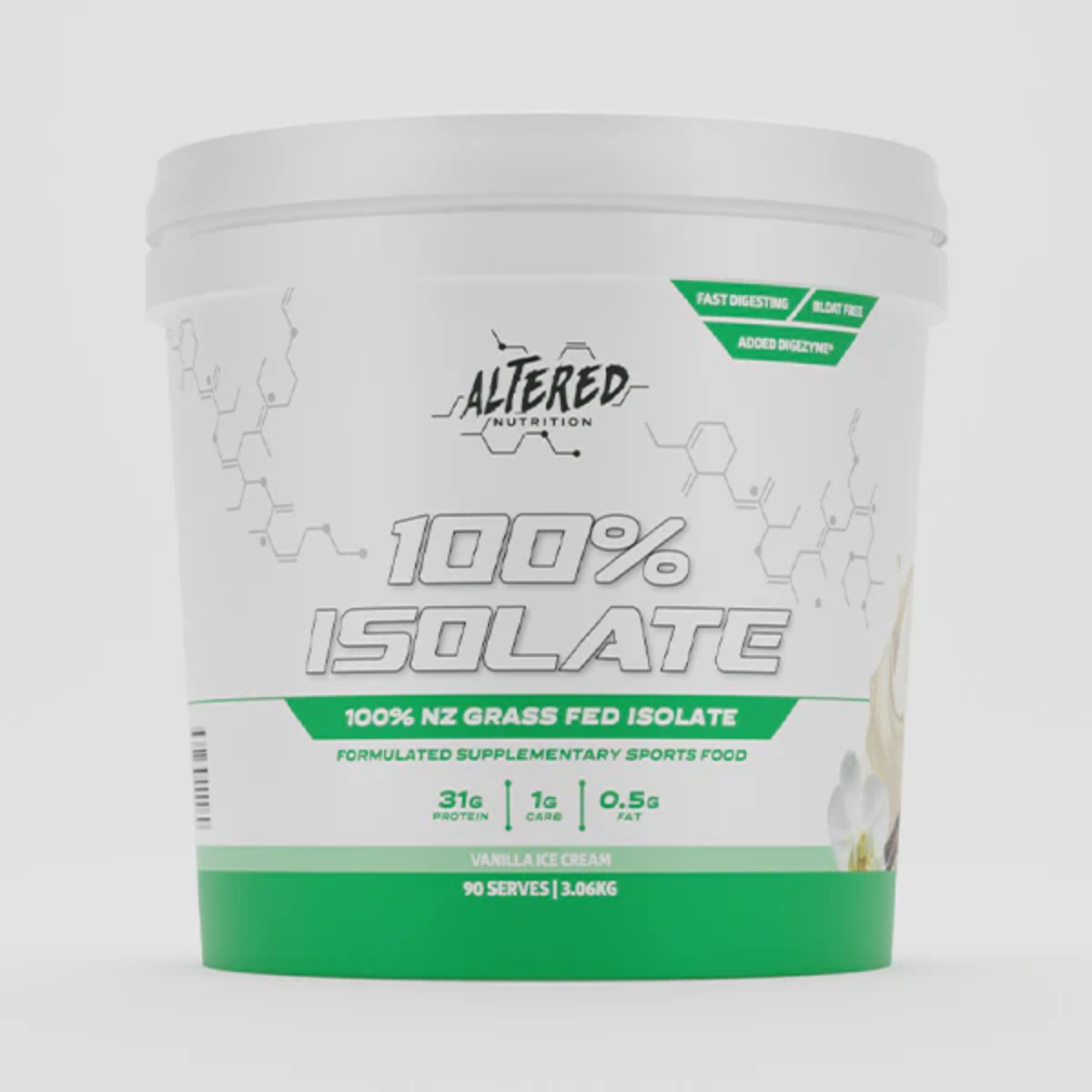 100% Isolate by Altered Nutrition offer you the highest quality grass fed Whey Protein Isolate, Sourced from New Zealand Pastures. Renowned as the best quality protein available.