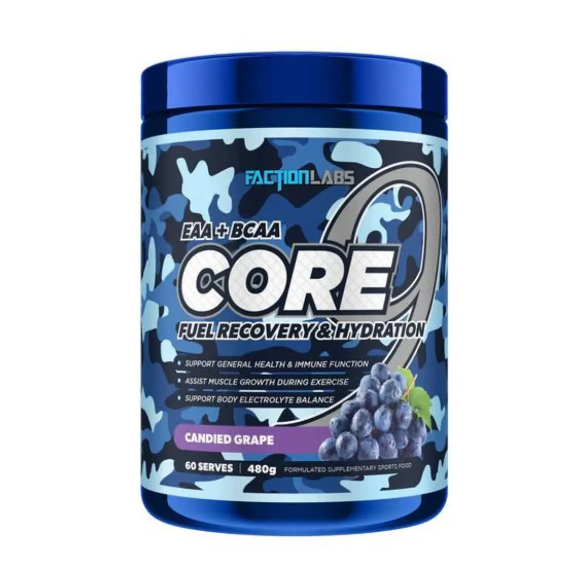 Faction Labs Amino Acid Complex, CORE 9 is dripping with 9g* of EAA’s and 6g* of BCAA’s whilst also delivering an extensive Hydration, General Health and Immune Support blend. CORE 9 will assist muscle growth during your resistance exercise, help increase your lean body mass and assist with connective tissue formation.