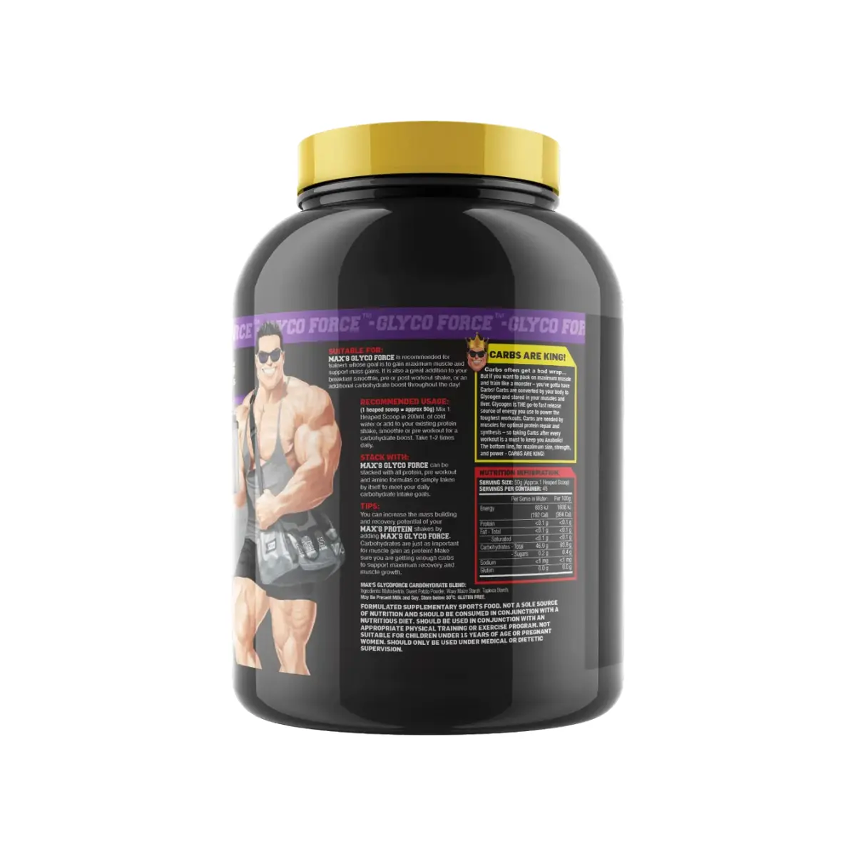 Meet our brand new PURE carbohydrate complex – MAX’S GLYCO FORCE A revolutionary sugar-free blend of real food carbohydrates meticulously crafted for those looking to achieve peak muscle growth and train with unparalleled intensity, the SECRET lies in the power of CLEAN carbs! Unlike the competitors, MAX’S GLYCO FORCE is a clean source of 4 real food carbohydrates with no added sugars. Each carb source is a carbohydrate polymer with different rates of digestion and absorption: